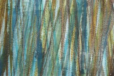 Amanda Hislop is influenced by colours and textures within landscapes and natural forms. She combines painting, drawing, fabric and free machine embroidered threads to capture images and integrate texture into and across the surface of her original art work.